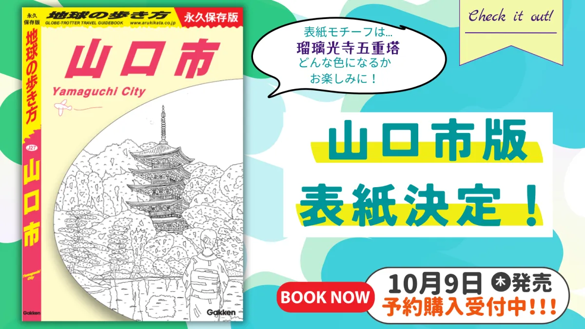 2025年10月9日に発売予定の『地球の歩き方 山口市』は、山口市を象徴する文化や観光スポットを紹介するガイドブックです。表紙には、国宝の「瑠璃光寺五重塔」が選ばれ、多くの地元市民に親しまれるこの名所が象徴的に描かれます。まもなく新しく生まれ変わる瑠璃光寺五重塔は、注目を集める存在です。