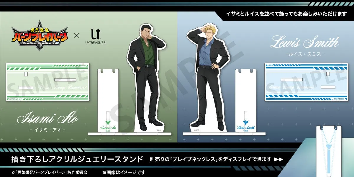 このアクリルジュエリースタンドは、「イサミ・アオ」と「ルイス・スミス」の描き下ろしアートを利用しており、別売りの「ブレイブネックレス」との組み合わせを考慮してデザインされています。お好きなキャラクターを並べて、特別な空間を演出することが可能です。