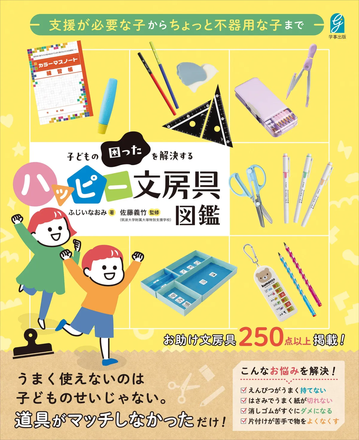 学事出版株式会社が新たに発行した『支援が必要な子からちょっと不器用な子まで子どもの困ったを解決するハッピー文房具図鑑』は、子どもたちのさまざまな困りごとに寄り添った文房具を紹介する一冊です。この本の目的は、特別支援が必要な子どもや、少し不器用な子どもでも、その個性にマッチした文房具を見つけることで、学校生活をよりスムーズに、ハッピーに過ごせるようにすることです。