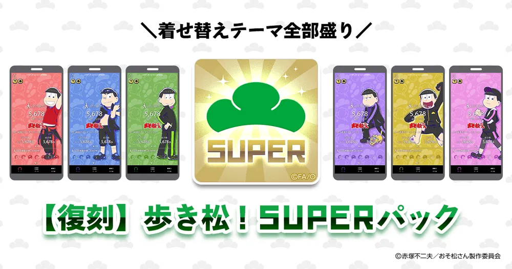 今年の2月17日、株式会社タニタヘルスリンクが運営する歩数計アプリ「HealthPlanet Walk」が大人気アニメ「おそ松さん」とのコラボレーションを再開しました。新たに配信される「【復刻】歩き松!SUPERパック」は、2025年12月31日までの期間限定で入手でき、利用可能期間は2026年6月30日までです。