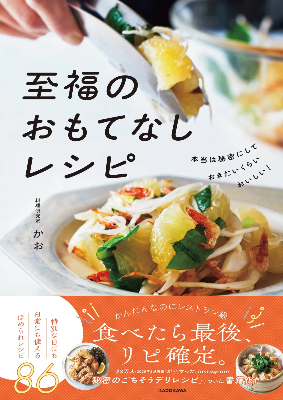 2025年6月19日、株式会社KADOKAWAから、料理研究家であり母であり猟師でもある著者・かおさんの初著書『本当は秘密にしておきたいくらいおいしい! 至福のおもてなしレシピ』が刊行されることが決定しました。この本は、家族や友人との食の時間を何よりも重視するかおさんならではの視点で、家庭でも気軽に作れる特別な料理を提案する内容となっています。