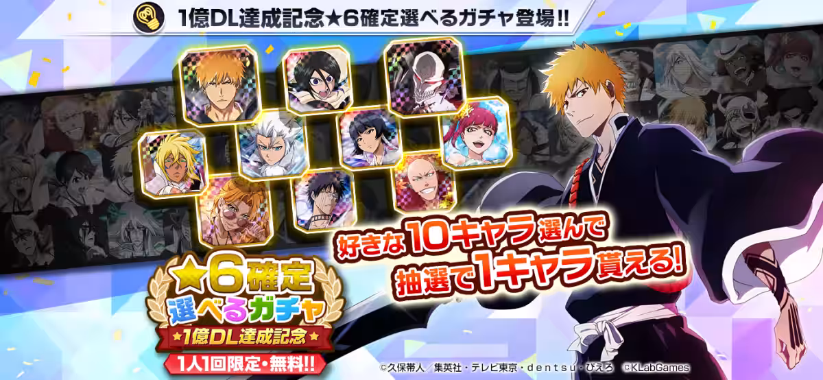 KLab株式会社が送る爽快3Dアクションゲーム『BLEACH Brave Souls』(通称:ブレソル)が、全世界累計1億ダウンロードを達成しました。この大きな節目を祝うべく、特別なキャンペーンが盛りだくさんの内容で用意されています。
