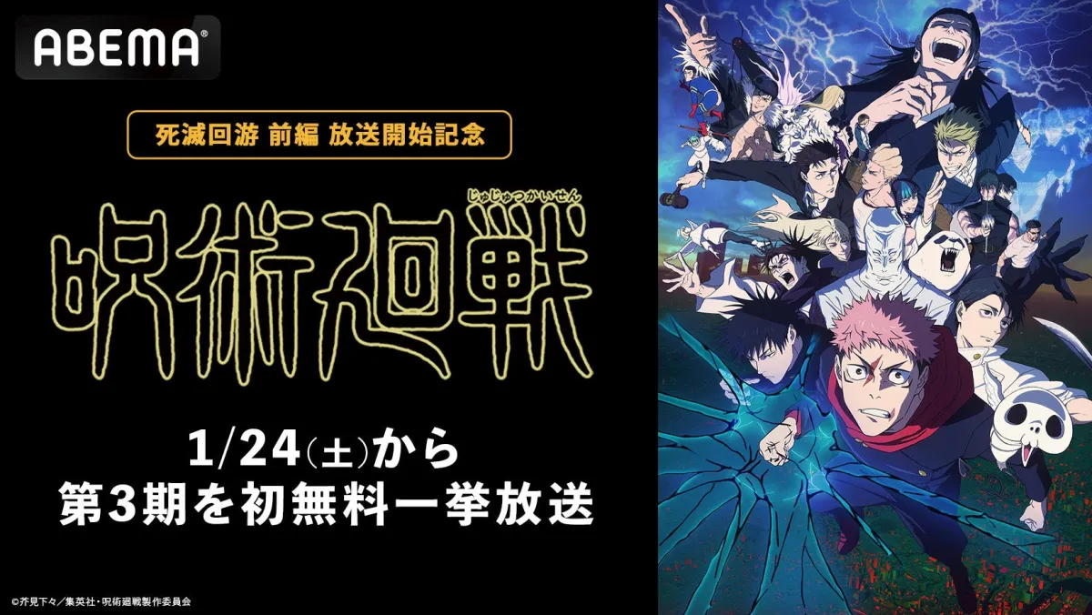 大注目のアニメ『呪術廻戦』の第3期「死滅回游 前編」がついに放送を開始します!この記念すべき日を迎えるにあたり、動画配信サービス「ABEMA」では特別な無料一挙放送が決定しました。