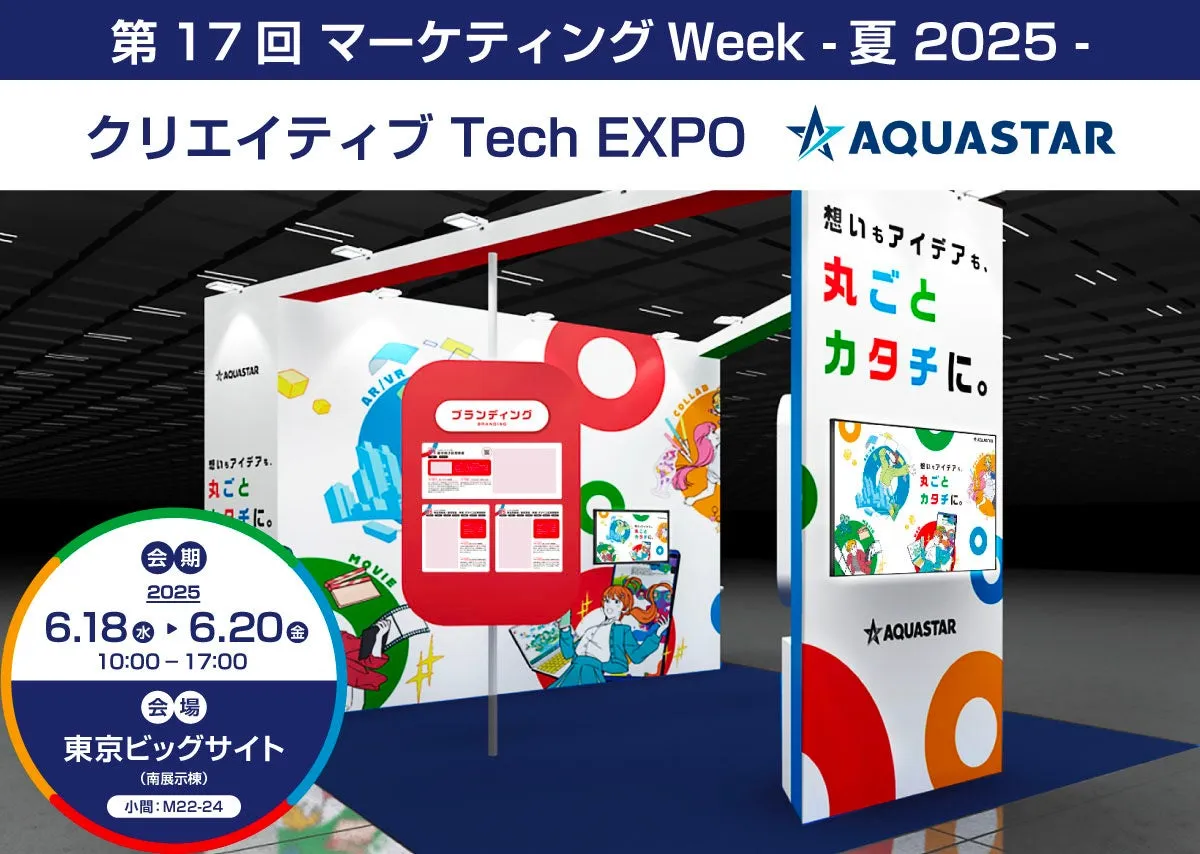 株式会社アクアスター(東京都中央区、代表取締役社長:原田弘良)は、2025年6月18日から20日の間に東京ビッグサイトで開催される「クリエイティブTech EXPO」に出展することを発表しました。今回の出展テーマは「想いもアイデアも、丸ごとカタチに」です。このテーマのもと、アクアスターは企業が持つマーケティング課題をデジタルクリエイティブの力で解決する取り組みに注力しています。