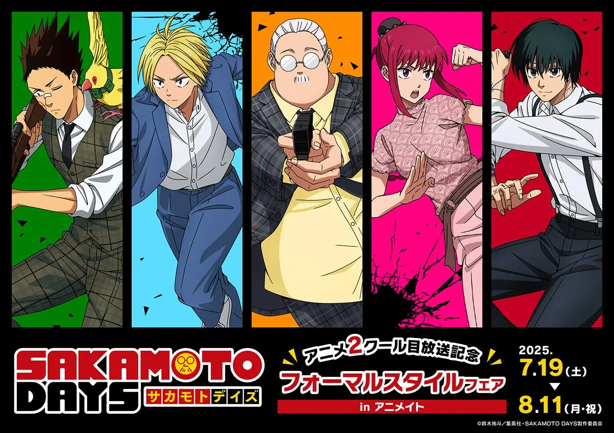 2025年7月19日、TVアニメ『SAKAMOTO DAYS』の新商品が登場します。アニメイトでは、この日から「フォーマルスタイルフェア」が開催され、特典としてポストカードがもらえる機会も見逃せません。