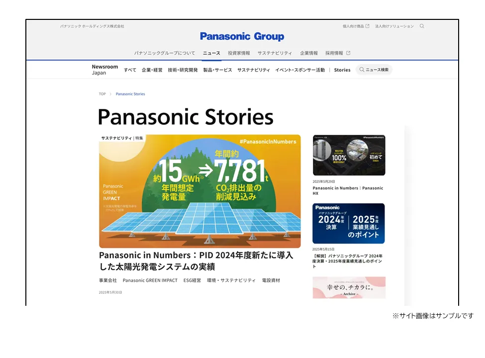 さらに、Panasonic StoriesはPanasonic Newsroom内に設置されているため、ユーザーは統一されたプラットフォーム上で情報を簡単に参照できます。過去のアーカイブ記事も引き続き閲覧が可能で、利用者にとっての利便性が向上しています。