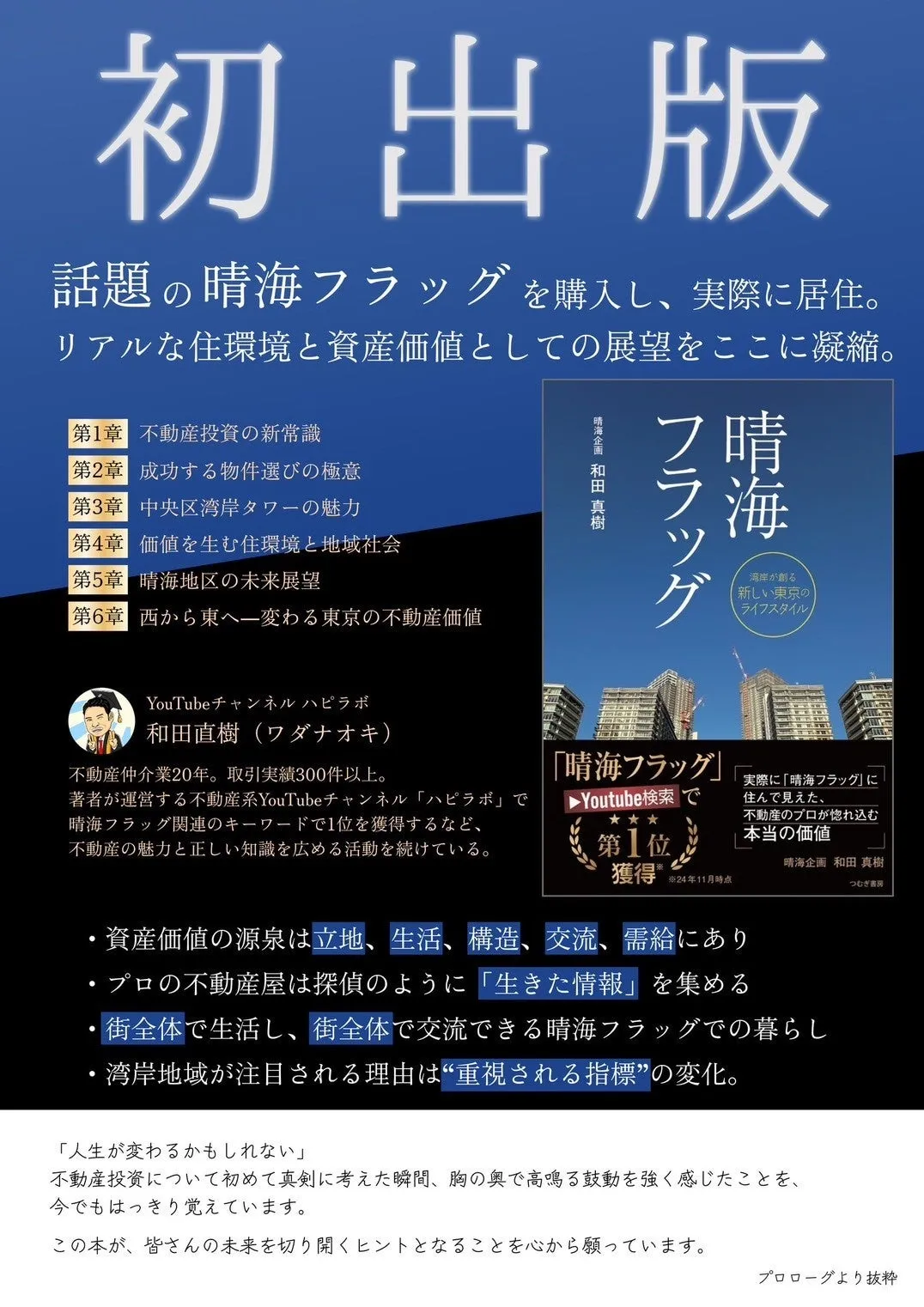著者の和田氏は、不動産業界に長年携わるプロフェッショナルです。彼は実際に晴海フラッグに居住しており、自身の肌で街のポテンシャルを感じ取っています。本書では、資産価値、ライフスタイル、コミュニティ形成といった重要な要素を三位一体で解説し、読者に売買・賃貸・居住が「良し」となる判断基準を提供します。