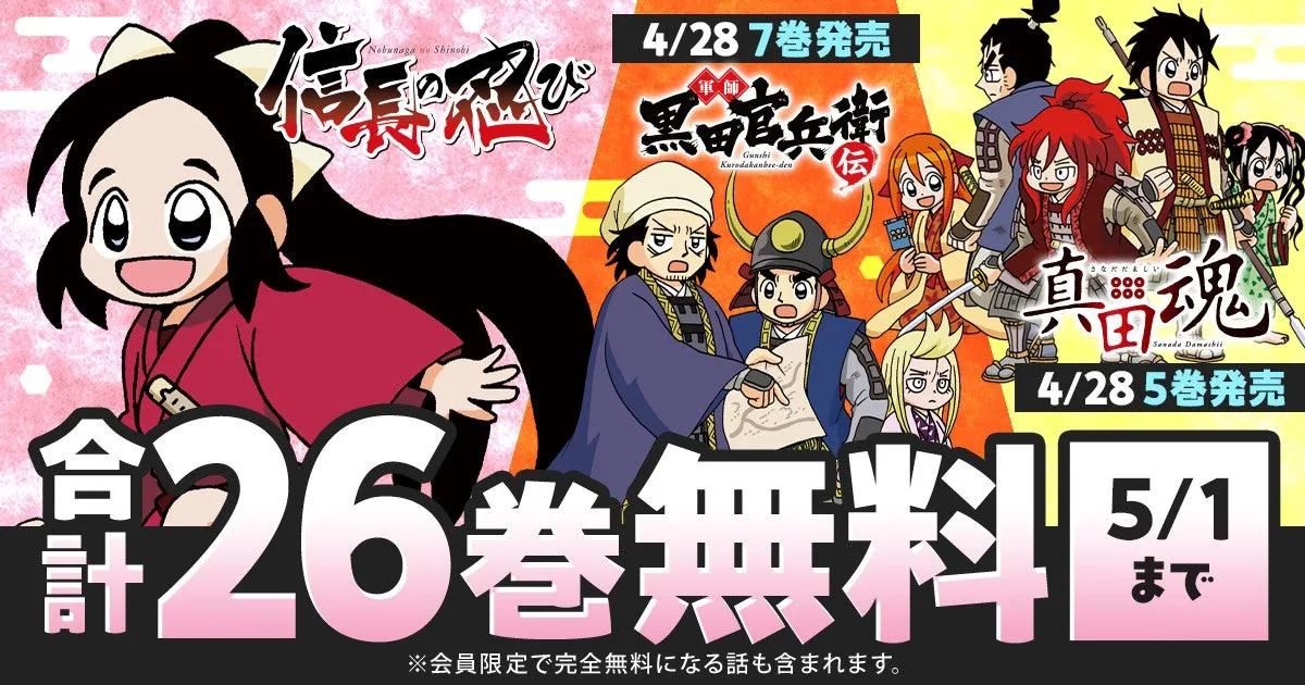 - - 『軍師黒田官兵衛伝』:5月11日(日)まで、3巻が無料で提供されます。