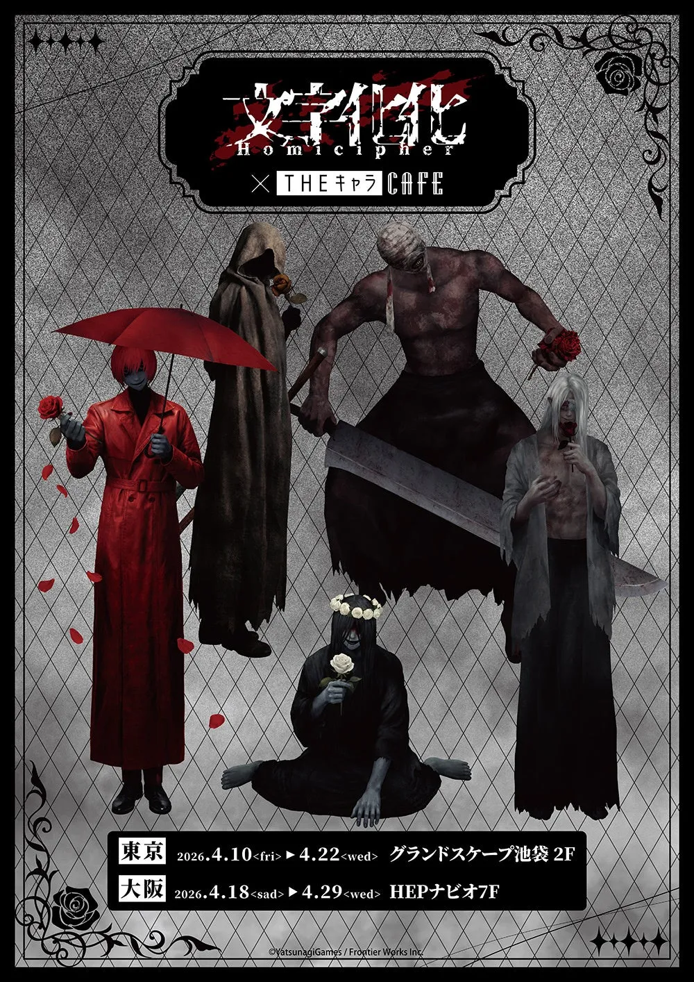 今回のカフェでは、原作者の八名木先生による新たな描き下ろしキャラクターが登場します。テーマは「バラの花を貴女に」というロマンティックな内容で、ホラー男子たちや魅力的なサブキャラたちもイメージしたメニューが展開されます。特にオリジナルデザインのグッズも豊富に用意されているので、ファンは必見です!