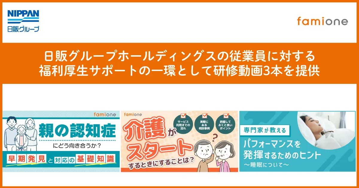 日販グループホールディングス株式会社が、法人向けの福利厚生サポートとして株式会社ファミワンと協力し、従業員向けの研修動画を追加しました。この取り組みは、従業員の生活の質を向上させることを目的としています。提供される研修動画は「親の認知症にどう向き合うか?早期発見と対応の基礎知識」、「介護がスタートするときにすることは?」、そして「パフォーマンスを発揮するためのヒント〜睡眠と自律神経〜」の3つのテーマから構成されています。