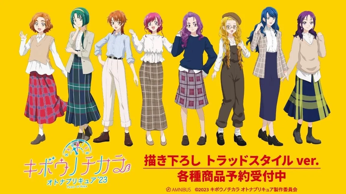 TOWER RECORDSで開催された「『キボウノチカラ〜オトナプリキュア'23〜』POP UP SHOP」に登場した描き下ろしイラストを基にしており、夢原 のぞみや夏木 りん、春日野 うららなど、主要キャラクターたちがトラッドスタイルでデザインされています。これにより、より一層の親しみを感じられる商品群が誕生しました。