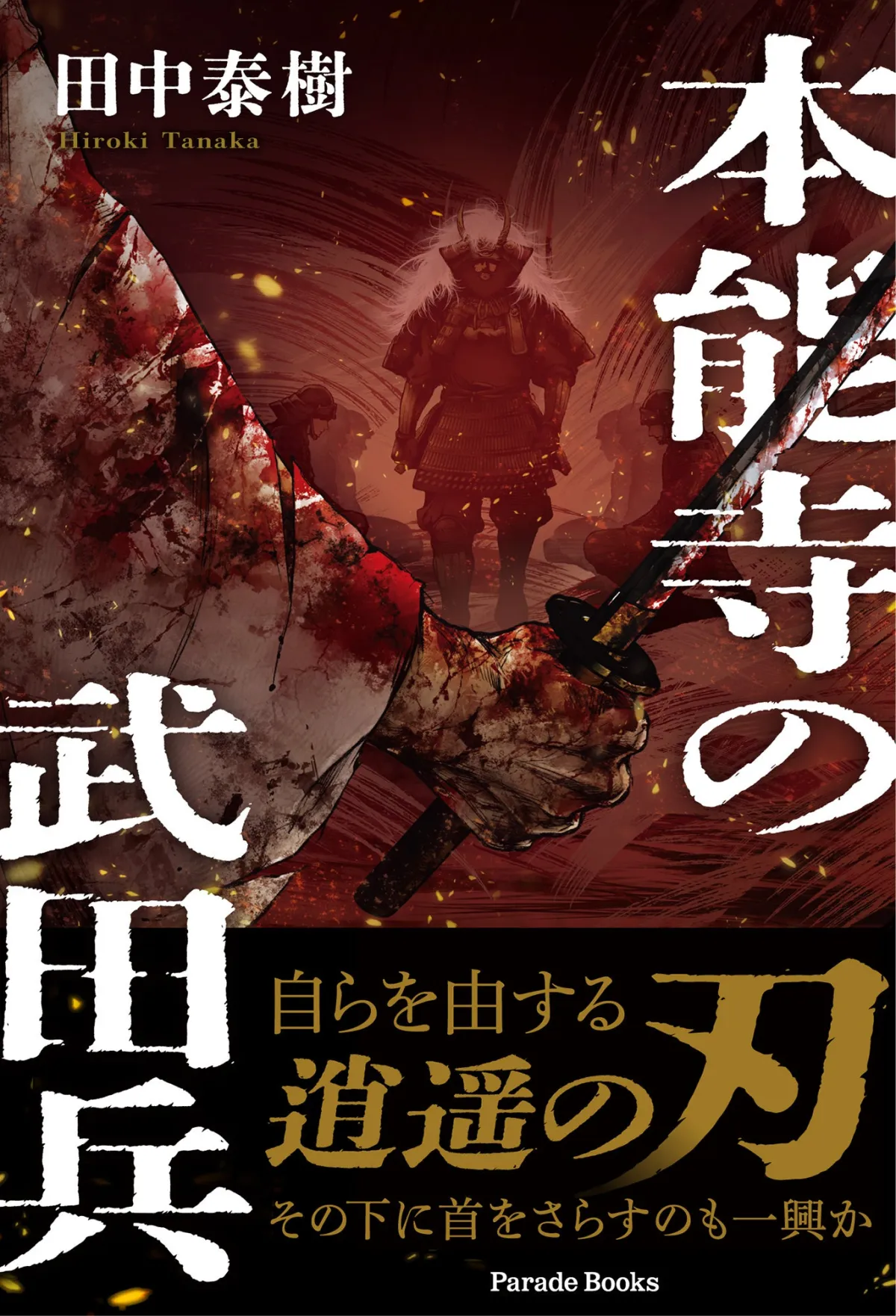 中央から熱き炎が立ち上り、すべてを飲み込むかのように迫る信長の姿が浮かび上がります。彼の前に現れる武田軍の姿、その目的は何なのでしょうか?新刊『本能寺の武田兵』が、読者を戦国時代の熾烈な戦いの中へ誘います。