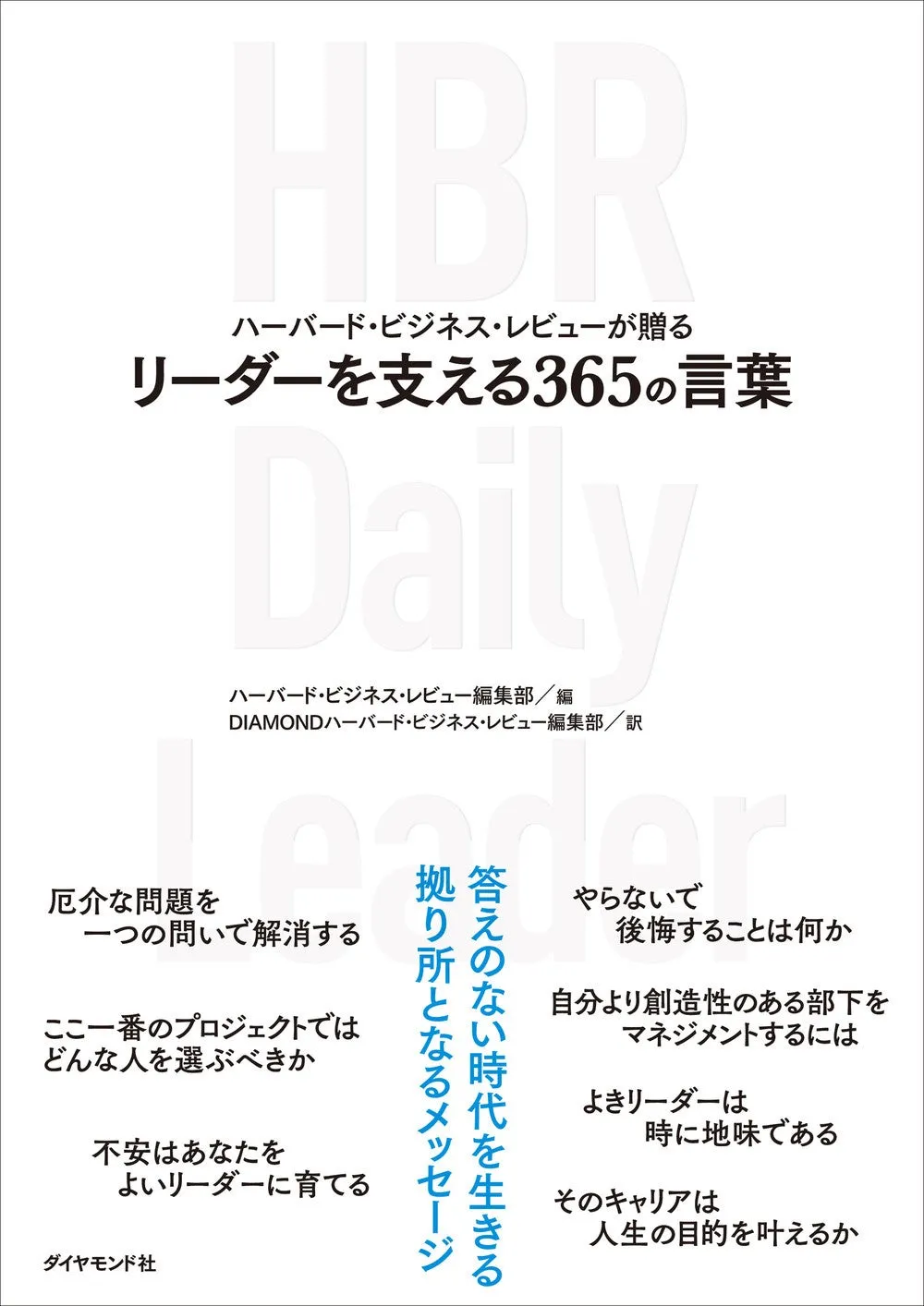 2023年8月27日、ダイヤモンド社より出版される『ハーバード・ビジネス・レビューが贈るリーダーを支える365の言葉』は、現代のリーダーが抱える問いに対する支えとして編纂された一冊です。世界最高峰のマネジメント誌である『ハーバード・ビジネス・レビュー』のアーカイブから選りすぐりのメッセージが収められ、リーダーたちが日々直面する様々な課題を乗り越えるためのヒントを提供します。