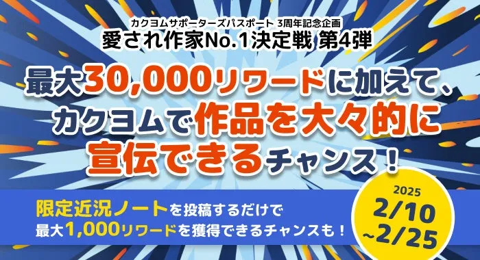 カクヨムを運営する株式会社KADOKAWAは、月額サービス「カクヨムサポーターズパスポート」(略称:サポパス)が3周年を迎えることを記念し、特別なキャンペーンを実施します。