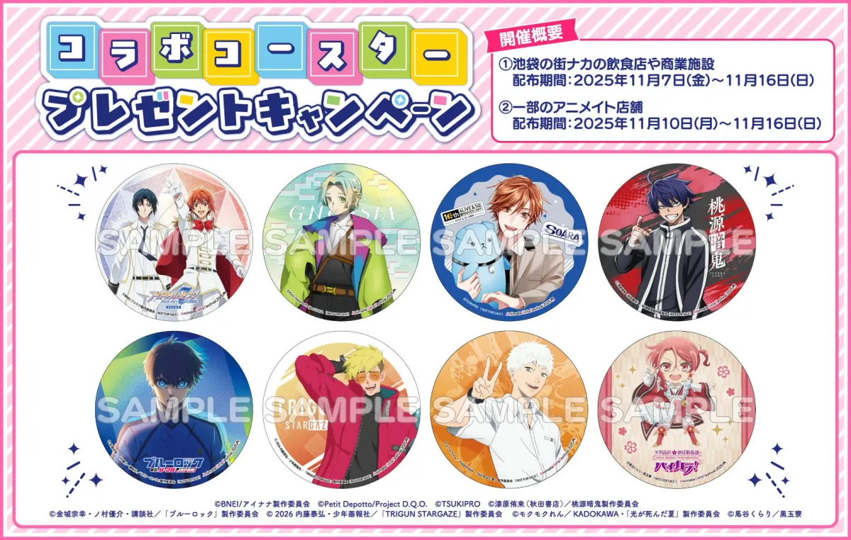 配布期間は、池袋の飲食店や商業施設では11月7日から16日まで、一部アニメイト店舗では11月10日から16日までの予定です。コースターのデザインは毎年異なり、選ぶことはできませんが、コレクションする楽しみが増えます。さらには、シリアルコードを使ったWチャンス賞も用意されており、豪華景品が当たるチャンスもあります。