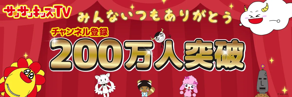 株式会社aquwaが運営するファミリー向けYouTubeチャンネル『サンサンキッズTV』が、2026年3月16日付で登録者数が200万人を突破しました。この大きなマイルストーンは、日々コンテンツを楽しみ、支えてくださる視聴者の皆様のおかげです。