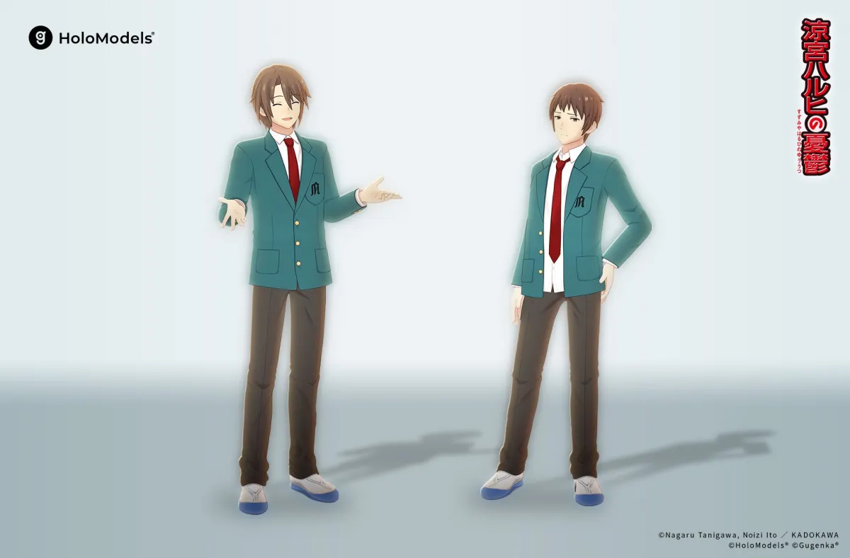 この度、株式会社Gugenkaから「涼宮ハルヒの憂鬱」に登場するキャラクター、キョンと古泉一樹のデジタルフィギュア「ホロモデル」が2025年7月12日(土)に発売されます。ホロモデルは、スマートフォンやMeta Questなどで公式キャラクターを楽しむことができる新しい形のデジタルフィギュアです。