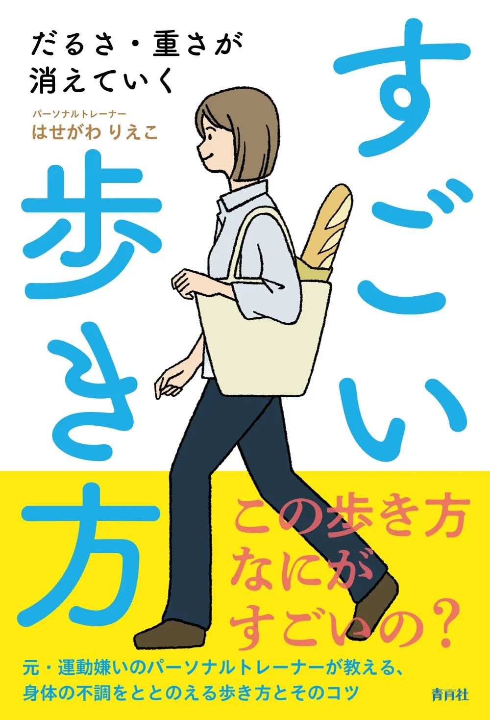 "だるさ・重さが消えていくすごい歩き方"(だるさ・おもさがきえていくすごいあるきかた)、著者ははせがわりえこ。判型は四六判(W128mm × H188mm)、128ページの内容はすべてモノクロです。ISBNは978-4-8109-1365-1で、定価は本体1500円+税。全国の書店やAmazonで購入可能です。