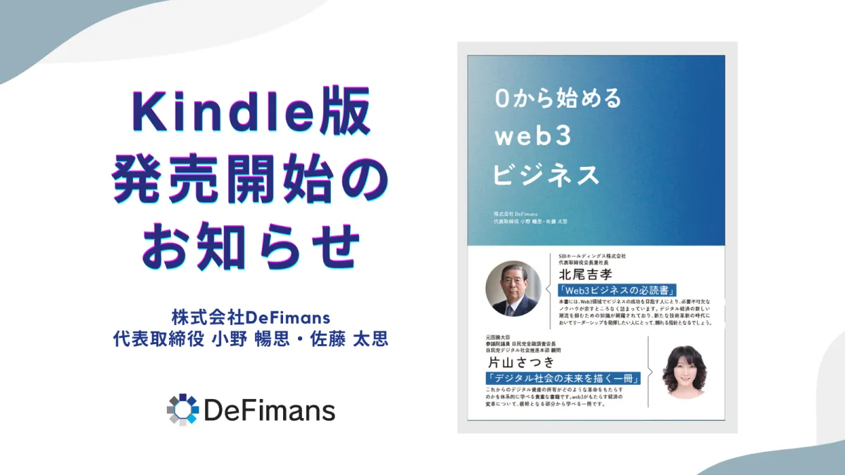 2025年4月15日、株式会社DeFimansから初の書籍『0から始める web3ビジネス』がKindle版として販売開始されました。この書籍は、Web3に興味がある方々にとって、第一歩を踏み出すための貴重なガイドとなります。