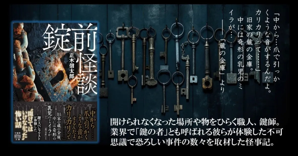 株式会社竹書房から、著者の正木信太郎による新たな怪談集『錠前怪談』が2025年9月29日にリリースされます。この本は、鍵師たちが実際に経験した不思議な事件を基にした恐怖譚が27編収められています。