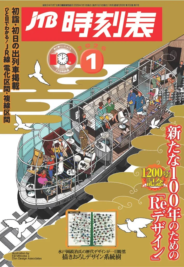 株式会社JTBパブリッシングが発行する『JTB時刻表』が、2025年12月19日(金)に発売される2026年1月号で通巻1200号を迎えます。この記念すべき号の表紙は、著名なデザイナー水戸岡鋭治氏によって描かれた特別なイラストが彩ります。また、長年親しまれてきた誌名ロゴがリニューアルされ、新たなデザインへと生まれ変わります。