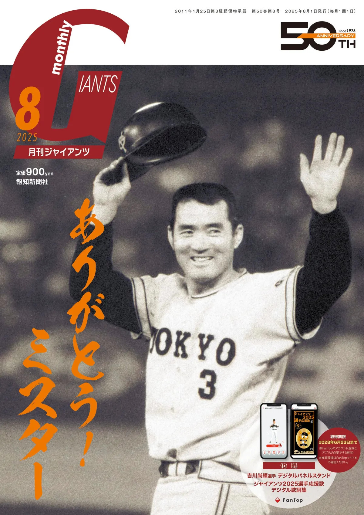 読売巨人軍のファンマガジン「月刊ジャイアンツ」2025年8月号が、2025年6月24日(火)から全国の書店やオンラインで順次発売されます。この号は、6月3日に89歳で逝去した長嶋茂雄終身名誉監督を追悼する特別号となっています。A4判・88ページのオールカラーで、内容が充実した一冊です。