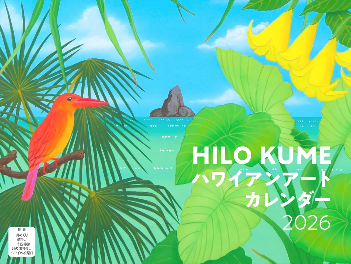 2026年のカレンダー『HILO KUME ハワイアンアート』が、イカロス出版から2025年9月24日に発売される。このカレンダーは、ハワイの魅力を癒しのタッチで描き出すアート作品を楽しむことができる、ノスタルジックなアイテムだ。