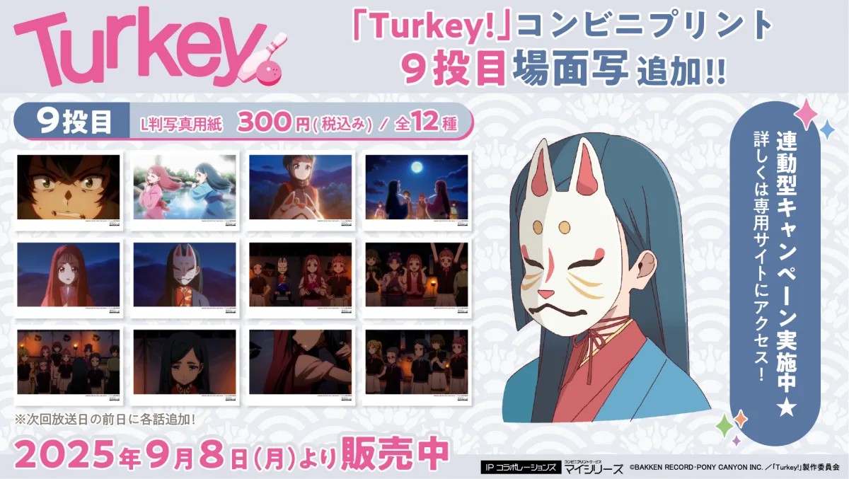 ますます注目を集めるTVアニメ「Turkey!」において、新たに第9話の場面写が、全国のコンビニにてプリントできるサービスとして登場しました。すでに大ヒットを記録しているこの作品は、毎週放送後に厳選されたシーンをプリントできるということでもファンの間で話題になっています。