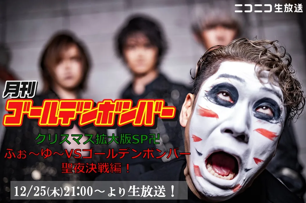 2025年12月25日、クリスマス当日にニコニコ生放送で「月刊ゴールデンボンバー」の特別拡大版が配信されます。今回は、「クリスマス拡大版SP卍 ふぉ〜ゆ〜VSゴールデンボンバー 聖夜決戦編」と題して、ゴールデンボンバーとふぉ〜ゆ〜が真剣勝負を繰り広げます!