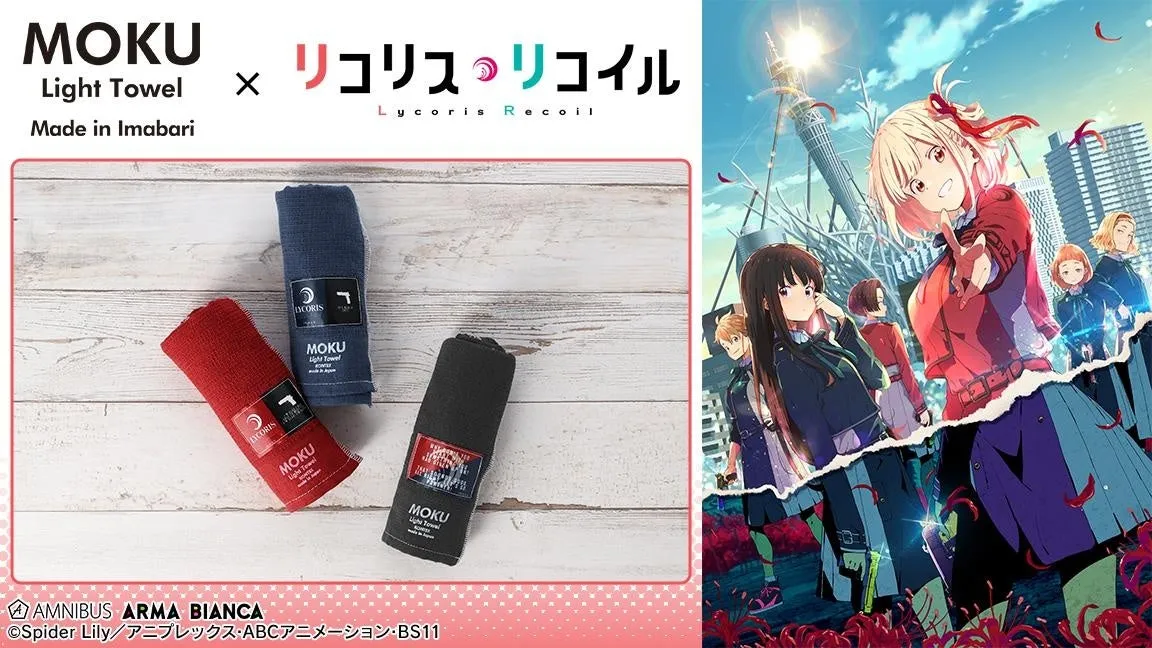 アニメファンに朗報です!TVアニメ『リコリス・リコイル』と、機能性を重視したタオルブランドMOKUが夢のコラボレーションを実現。株式会社アルマビアンカが展開する通販サイト「AMNIBUS」にて、4月23日(水)から受注販売がスタートしました。