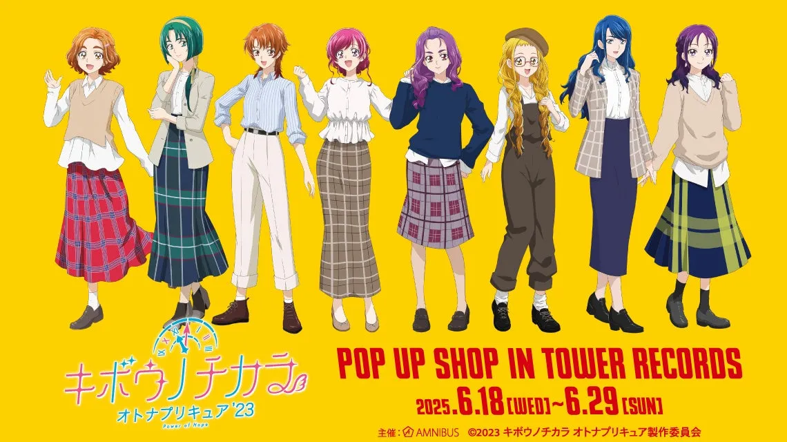 2025年6月18日から6月29日までの期間、タワーレコードの池袋店、梅田NU茶屋町店、名古屋近鉄パッセ店の3店舗にて、「キボウノチカラ~オトナプリキュア’23~」ポップアップショップが開催されます。今回は、株式会社アルマビアンカがタワーレコードと共同で実施するこのイベントには、特別に描き下ろされた新規イラストを使用したグッズが数多く販売される予定です。