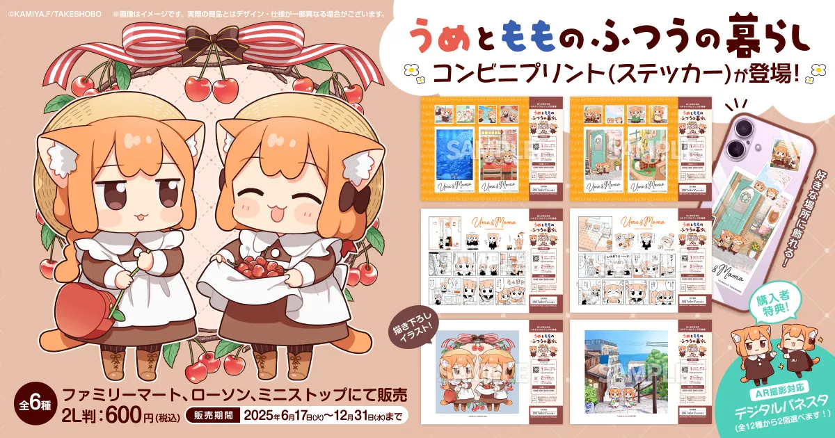 藤沢カミヤの漫画『うめともものふつうの暮らし』がコンビニプリント登場!