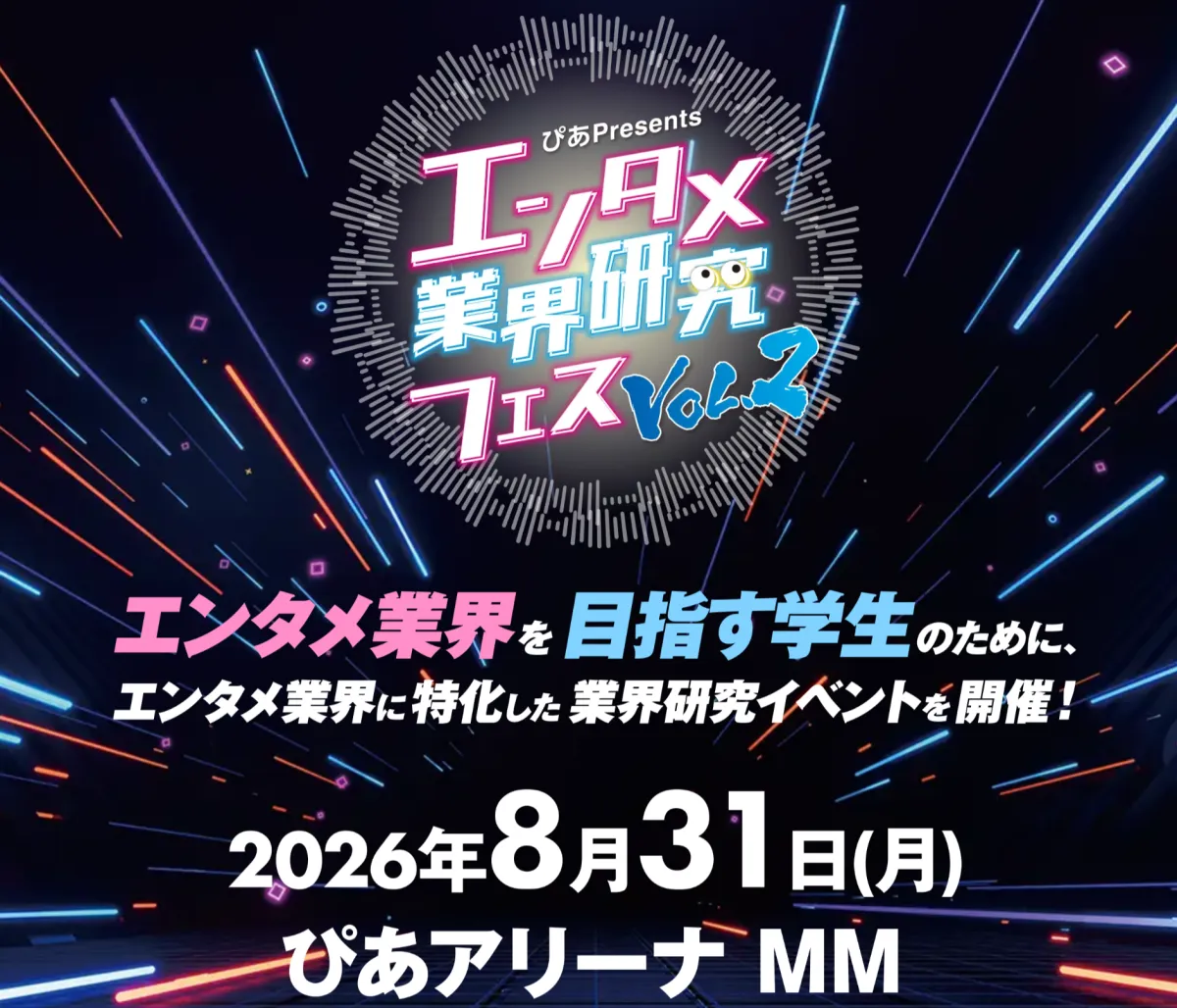 2026年8月31日(月)、ぴあアリーナMMにて、待望の『~ぴあ presents~ エンタメ業界研究フェス VOL.2』が開催されることが発表されました。このイベントは、新たにエンタメ業界を目指す学生たちに向けた業界研究イベントであり、参加者に多様な学びと体験の機会を提供することを目的としています。