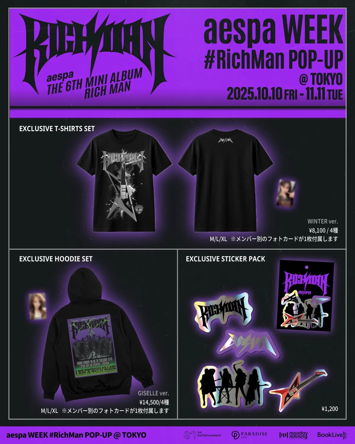 『aespa WEEK #RichMan POP-UP @TOKYO』は、韓国やアメリカでの成功を受けて日本に上陸したイベントです。ここでは、aespaの魅力を最大限に引き出した展示が行われており、ファンは彼女たちの音楽だけでなく、彼女たちのスタイルや個性を肌で感じることができます。公式グッズの販売から特典の配布、さまざまな展示まで、ファンにとって見逃せない内容が盛りだくさんです。