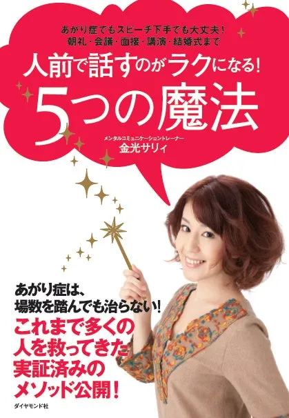 あがり症に悩む多くの人々に向けて、金光サリィ氏の著書『人前で話すのがラクになる!5つの魔法』が第13刷の重版を迎えました。脳科学に基づいた独自のアプローチは、従来の「場数を踏む」「スピーチ練習」「腹式呼吸」といった手法とは一線を画します。