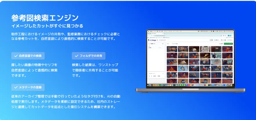 AI Mageは、このプロジェクトに参加することにより、アニメ制作現場でのAI活用の実証を推進してきました。この中核となるのが「参考図検索エンジン」です。