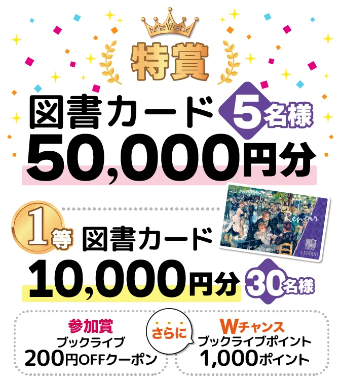 株式会社三省堂書店(以下、三省堂書店)と株式会社BookLive(以下、ブックライブ)が共同で実施する「立冬の超!!大抽選会」が、2025年11月4日から12月8日の間に全国の三省堂書店で開催されることが決定しました。このキャンペーンでは特賞として『図書カード5万円分』が5名様に当たるほか、全応募者にブックライブで使える全品200円OFFクーポンがプレゼントされます。