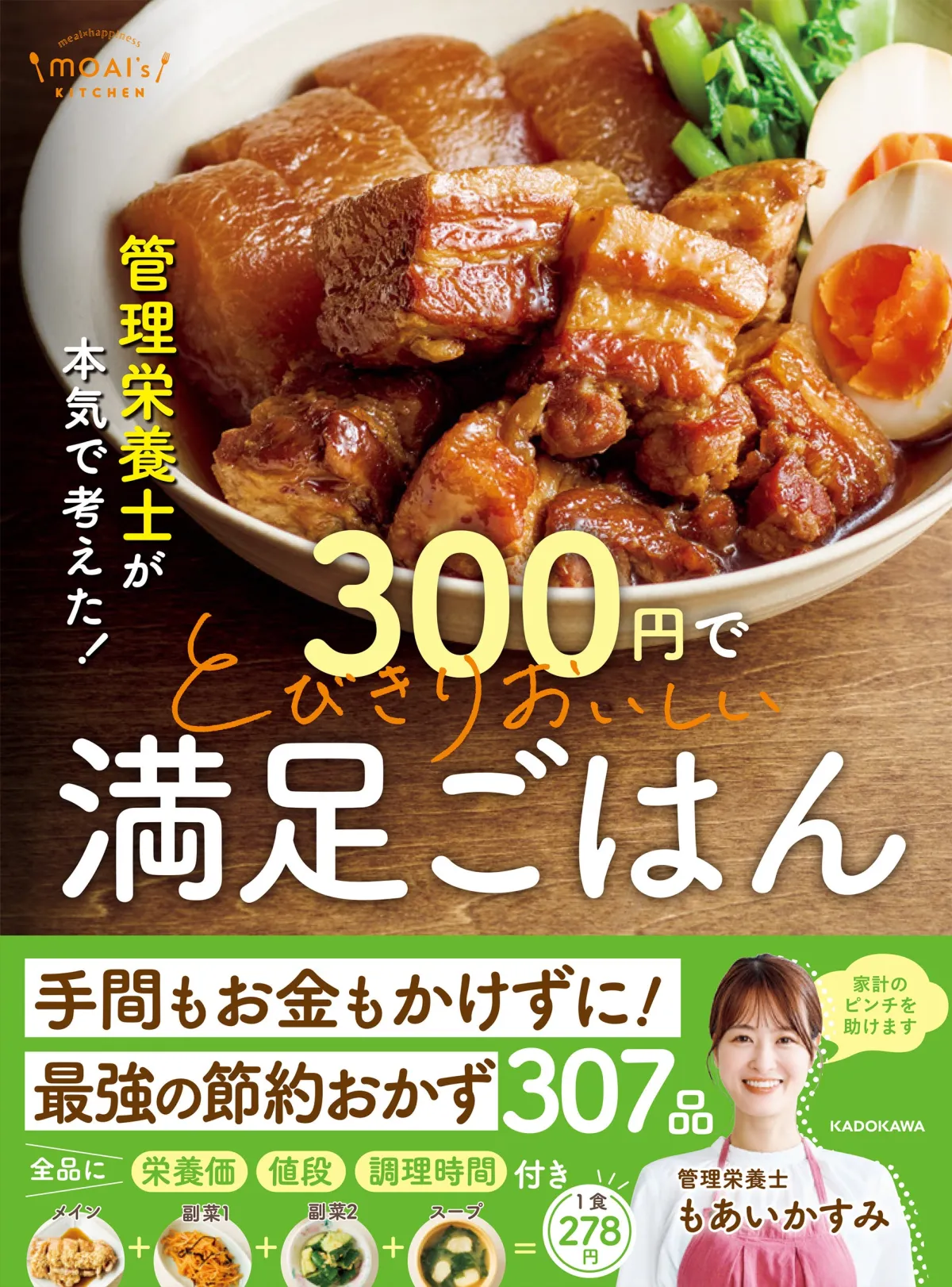 物価の高騰が続き、家計が厳しいという声が多く聞かれる今日この頃。そんな中、株式会社KADOKAWAから新たなレシピ本が発売されます。その名も『管理栄養士が本気で考えた! 300円でとびきりおいしい満足ごはん』。著者は、栄養士であり料理研究家のもあいかすみさんです。今回の本は、手間をかけずに1食300円以下で栄養も考慮された美味しい料理を作れるという画期的な提案が満載!