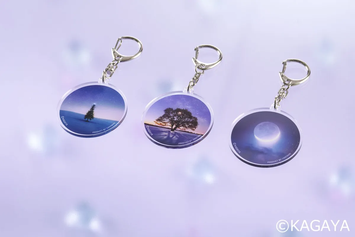 今回の展覧会では、KAGAYAの人気作品を使用した多彩なグッズも販売予定です。中でも目を引くのは、初ラインナップとなるアクリルキーホルダー(990円)です。透明感があり、作品の美しさを引き立てるデザインになっています。また、クリアファイル(440円)やクリア栞(880円)といった新柄も登場し、日常生活にKAGAYA作品を取り入れることができます。特にクリア栞は透明な素材で、美しいオーロラと星空が際立ち、売り切れが予想される人気商品です。