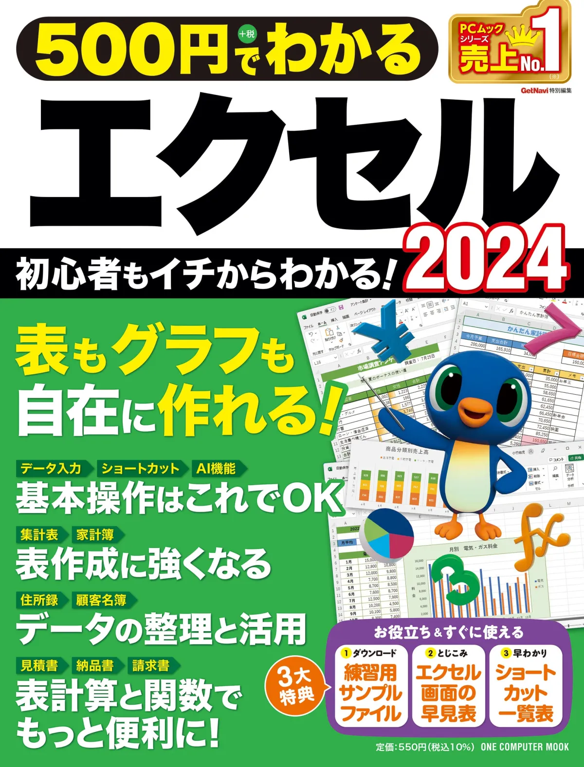 株式会社ワン・パブリッシングが5月29日に発売する『500円でわかるエクセル2024』は、エクセル初心者必見の実用ガイドブックです。本書は、初めてエクセルを触る方でも安心して学べるよう、基礎から応用まで丁寧に解説されています。定価550円(税込)で、パソコンの操作に不安を感じている方にもぴったりの一冊です。