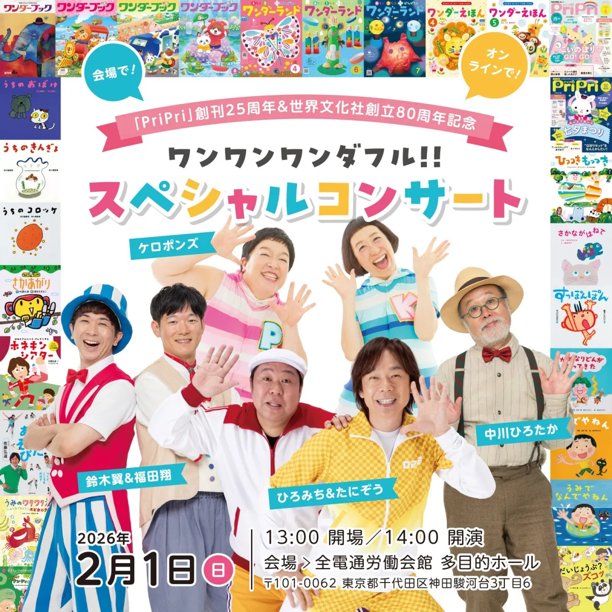『PriPri』創刊25周年と世界文化社グループ創立80周年を記念して、2026年2月1日(日)にスペシャルコンサートが開催されることが決定しました。このイベントは、誰もが楽しめる内容となっており、特に親子での参加を推奨しています。音楽や絵本の世界で長年親しまれてきた豪華なアーティストたちが一堂に集結し、子どもたちやその保護者たちに向けて、心温まるパフォーマンスを披露する予定です。