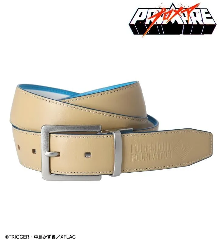 このリバーシブルベルトは、フォーサイト財団をイメージしデザインされています。表面はベージュで、クレイの名台詞「これがパルナッソス計画。人類の最後の希望だ。」の英訳とロゴが型押しされています。裏側はクレイの制服を思わせるデザインで、青いラインが印象的。スーツスタイルでもカジュアルなスタイルにもマッチし、様々なシーンで使える逸品です。