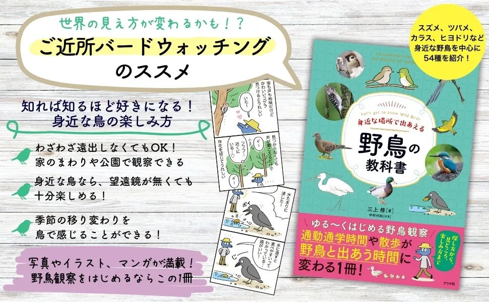 株式会社ナツメ社が、新たなバードウォッチングの楽しみ方を提案する書籍『身近な場所で出あえる 野鳥の教科書』を4月17日に発売します。通勤や散歩の時間を有意義に過ごしたいと考えている方に向けて、身近にいる野鳥たちに出会う方法を詳しく解説しています。