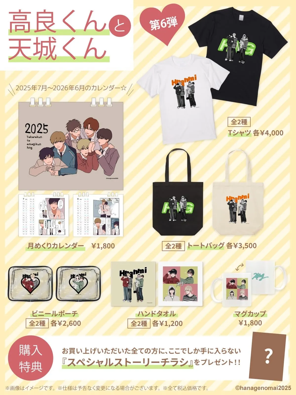 2025年3月13日(木)より、話題のBLコミック「高良くんと天城くん」とヴィレッジヴァンガードによるコラボグッズ第6弾が販売されます。この度のコラボも、~はなげのまい~先生による美しい描きおろしイラストを使用した商品が多数登場。ファンの皆さんにはたまらないアイテムが揃っています!
