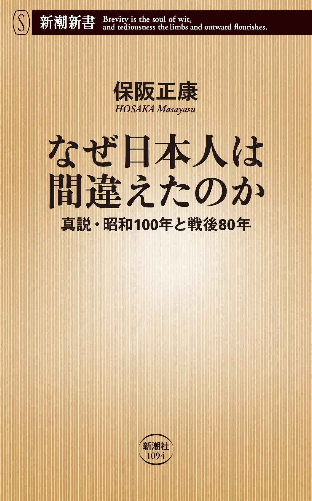 保阪正康の著書『なぜ日本人は間違えたのか――真説・昭和100年と戦後80年』が2025年7月17日に新潮新書から刊行されます。著者は昭和史の第一人者として知られ、数千人に及ぶインタビューや膨大な研究を通じて得た知見をもとに、昭和100年を振り返ります。