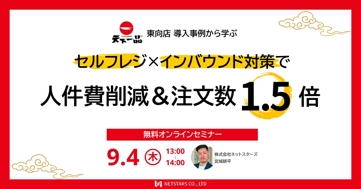 2025年9月4日(木)、株式会社ネットスターズが主催するウェビナー「セルフレジ×インバウンド対策で人件費削減&注文数1.5倍」が開催されます。このイベントの目玉となるのは、実際に「天下一品」東向店で導入されたセルフレジシステムの成功事例です。ここではその詳細をご紹介します。