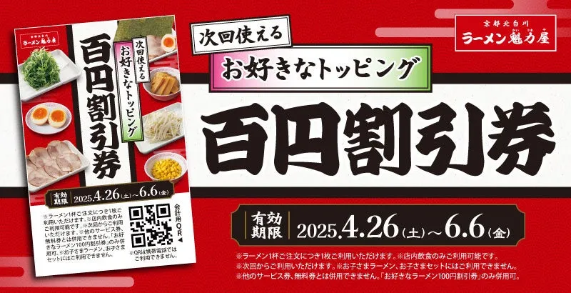 ラーメン好きに朗報です。株式会社魁力屋は、2025年4月26日より「お好きなトッピング100円割引券」を全国のラーメン魁力屋店舗で配布します。このキャンペーンは、日頃の感謝の意を込めて行われ、ラーメンをより美味しく楽しむチャンスです。