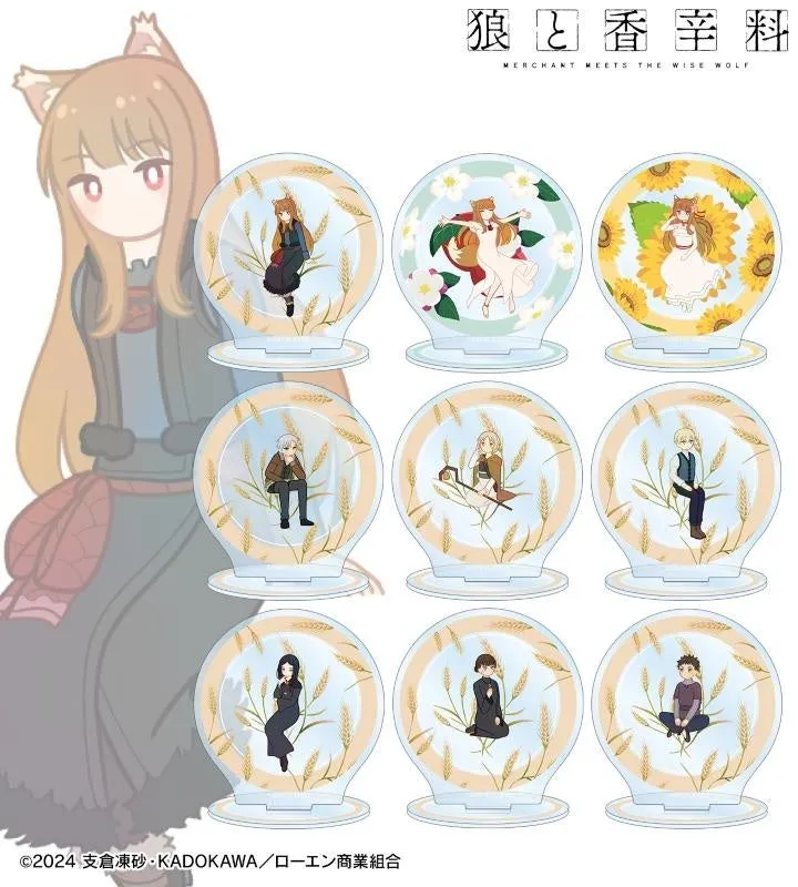 アクリルスタンドには、ホロやクラフト・ロレンス、ノーラ・アレントなどのキャラクターが描かれており、それぞれの細かな特徴が強調されています。サイズは本体が約63×59mm、台座は約50×29mmで、厚みは3mmです。単品価格は880円(税込)、BOX価格は7,920円(税込)となっており、1BOXあるいはBOX相当数の注文するとAMNIBUS限定の特典が付いてきます。