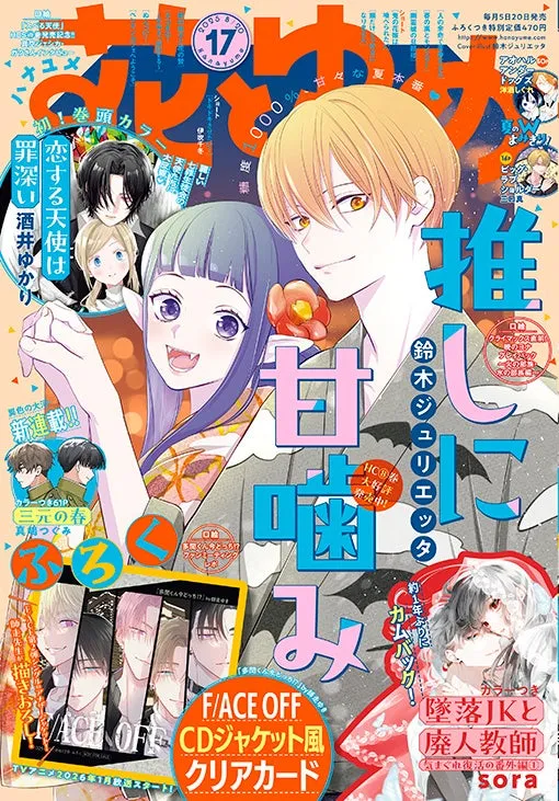 約1年の休載を経て、人気漫画「墜落JKと廃人教師」が戻ってきました。ファンにとって待ちに待ったこの瞬間、8月5日(火)に発売された『花とゆめ』17号では、そんな「墜落JK」と様々な特集が繰り広げられています。特にこの号のふろくには、描きおろしのクリアカード「F/ACE OFF CDジャケット風クリアカード『多聞くん今どっち!?』 by 師走ゆき」が付いており、ファンならずとも見逃せない内容となっています。