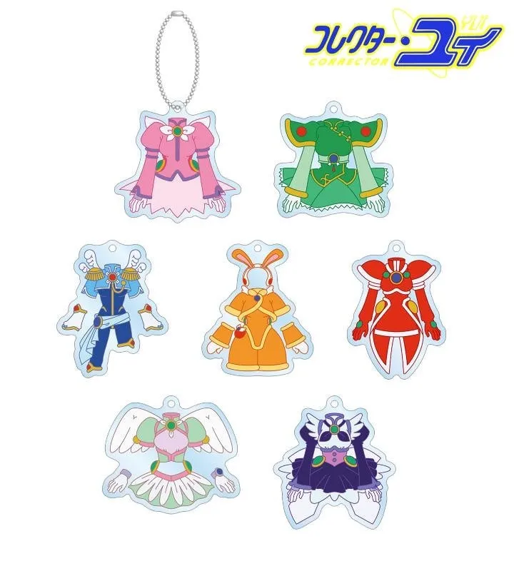 まずご紹介するのは、トレーディング衣装アクリルキーホルダーです。このアイテムにはコレクター・ユイ、コレクター・ハルナ、コレクター・アイがそれぞれのエレメントスーツ姿で描かれています。